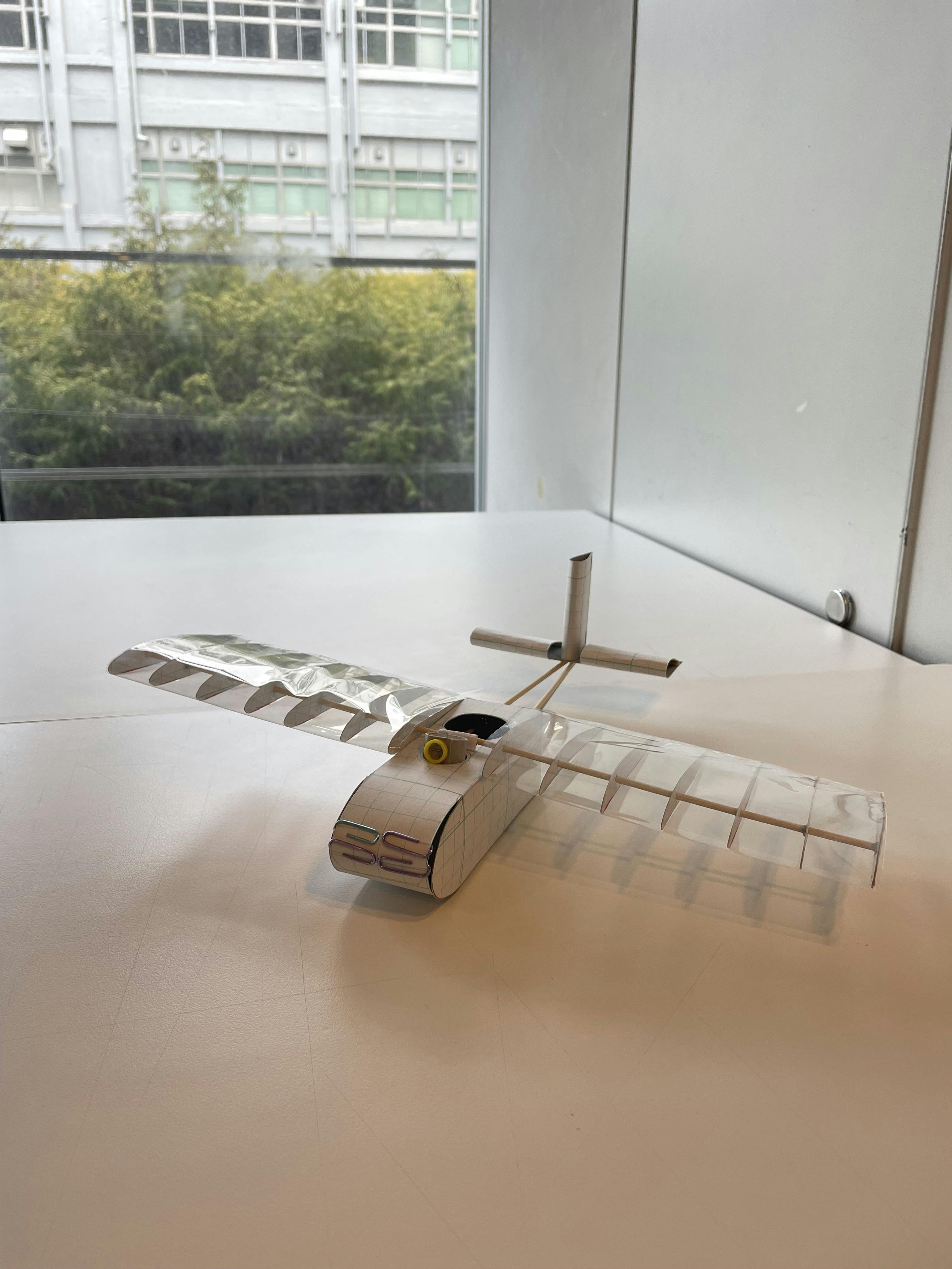 私たちはまず「飛行機ってなんで飛ぶんだろう?」から勉強し始めました!最初は工作用紙を使って飛行機の模型を作って実験をしました!