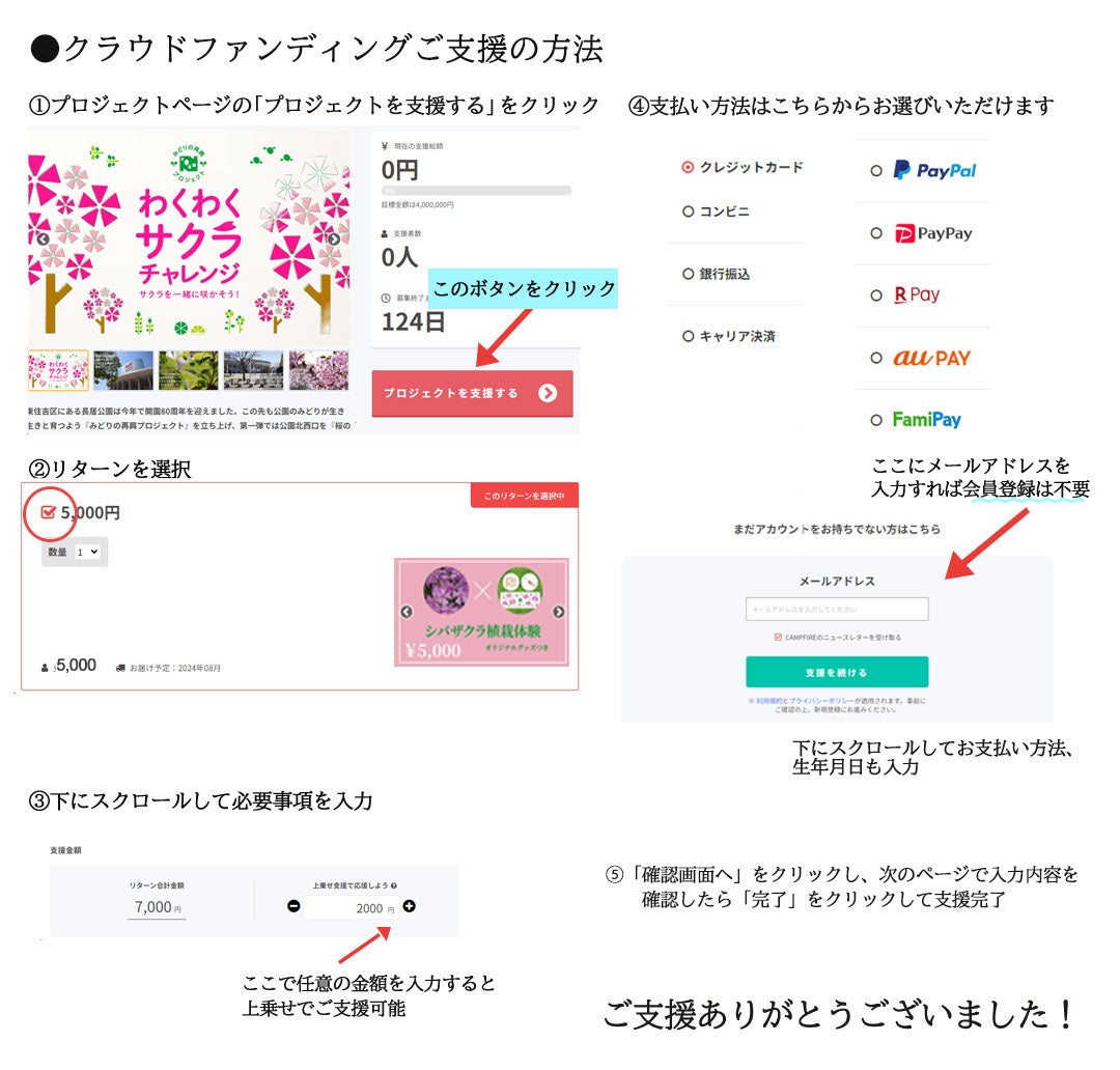 みなさまからご支援いただいた資金は、桜の植樹にかかる費用に充てさせていただきます。