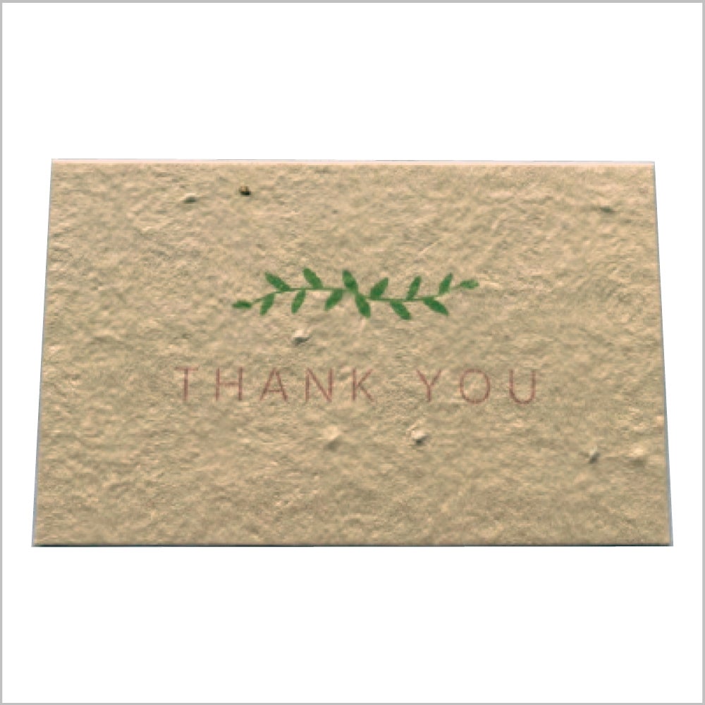 土に植えると花が咲く、花の種が入った育てて楽しむ再生紙のお礼状です。