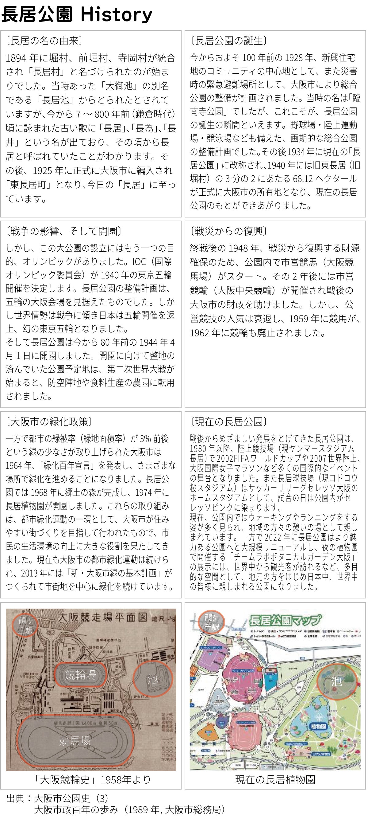 今年80周年を迎えた長居公園。開設当初から時代は大きく変わりました。時代が変われば公園に求められる機能も変わります。
