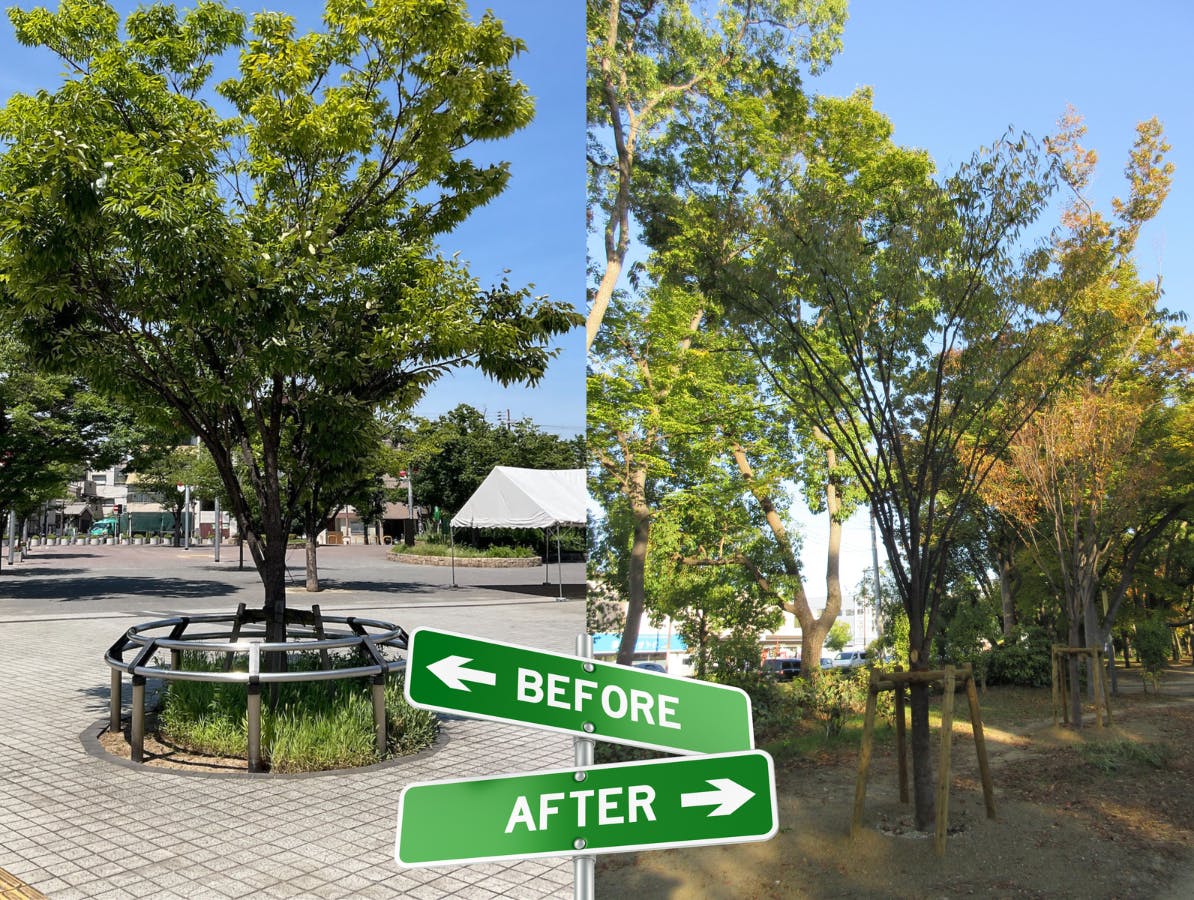 長居公園 北エントランスのケヤキは、公園東側に引っ越しました。
