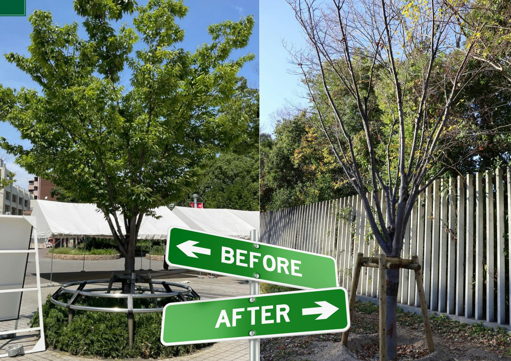 長居公園 北エントランスのケヤキは長居公園の東側と南東側に引越ししました。
