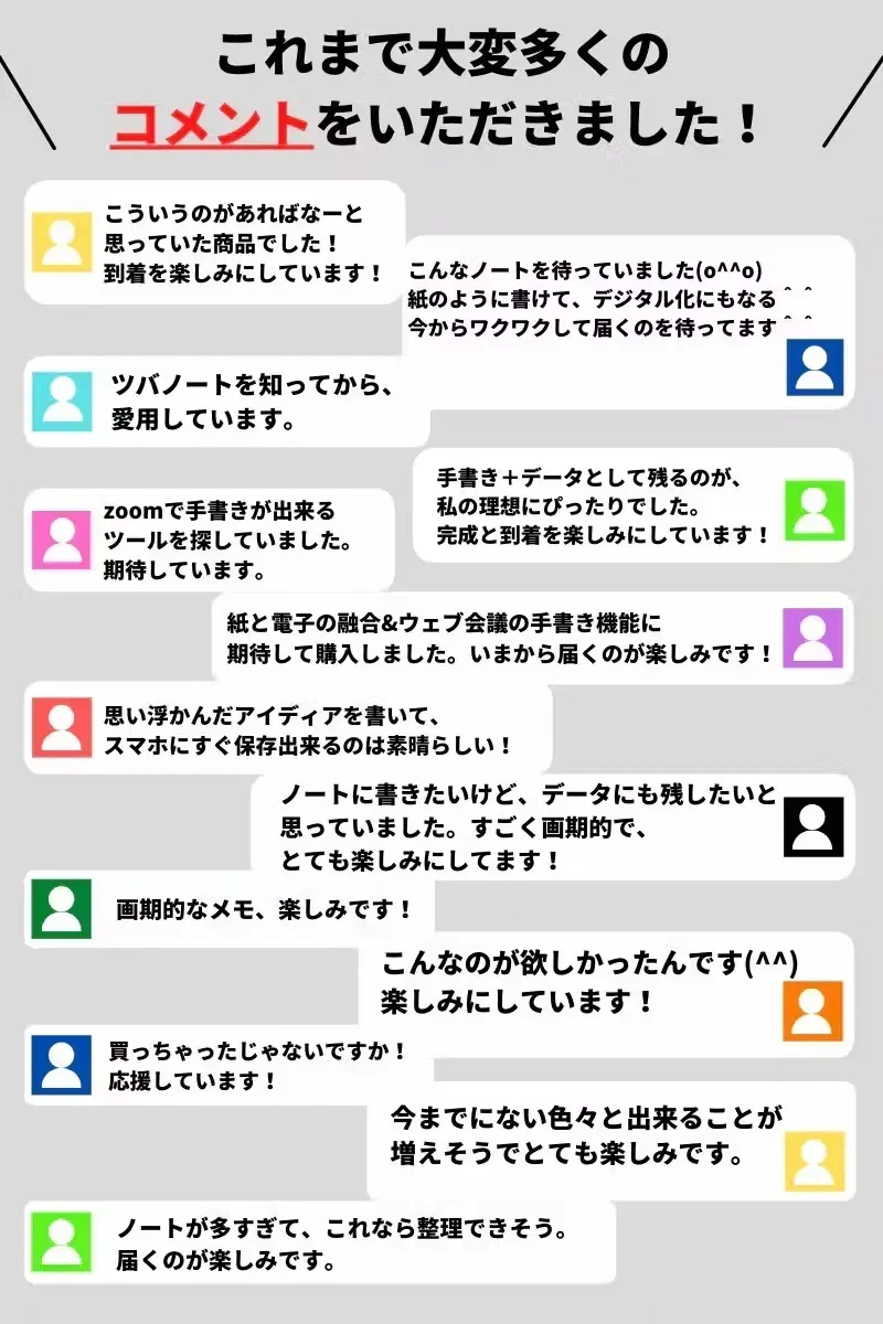 ■たいへん多くの「ツバメノートご愛用者様」からご支援いただきました。