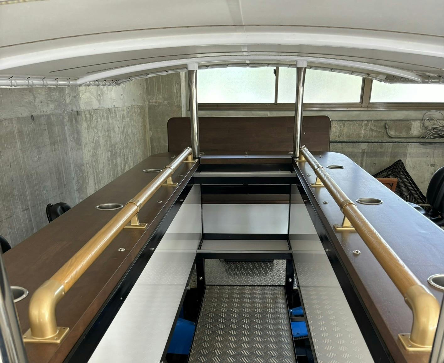福岡博多の魅力ある観光資源「屋台」のようなカウンターバーが、お客様着席のまま自走するイメージの乗り物です。