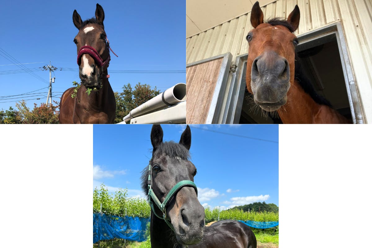 引退競走馬(サラブレッド)以外にも、りんごちゃんのように大きな馬からそら君のようなミニチュアポニーまで、品種や性別、大きさや性格も様々で、バラエティに富んだかわいい仲間たちです。