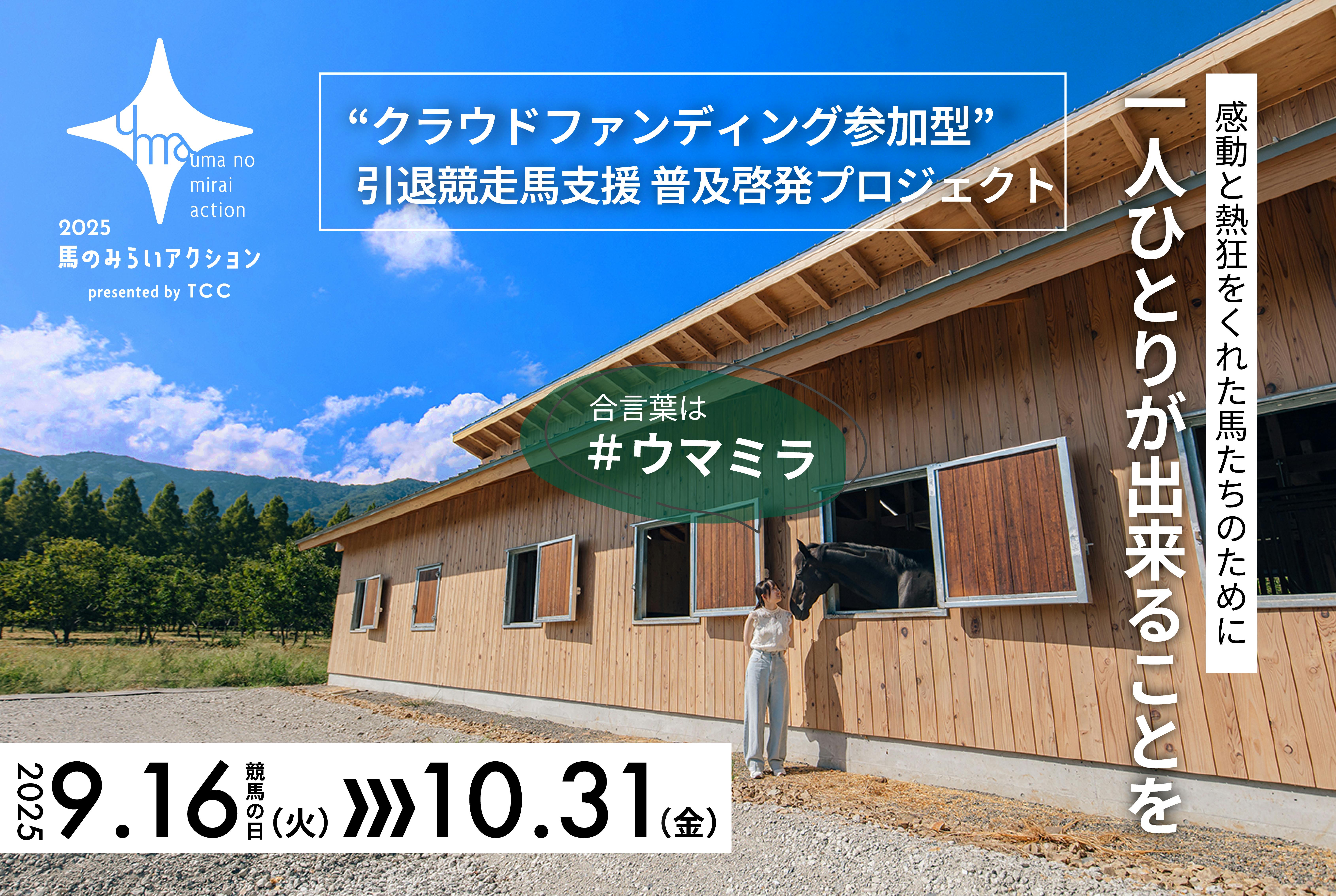 2025/10/10 17:28皆さま、こんばんは!「競馬の日」である 9月16日(火) より、「#馬のみらいアクション2025」がスタートしました。https://camp-fire.jp/projects/876406/view競走馬になるために生産され、命懸けで走り続けるサラブレッドたち。競馬を通じて、私たちに感動や勇気・熱狂・興奮を与えてくれる一頭一頭に、心からの感謝と敬意を。競走馬を引退しても、彼らの馬生は終わりません。私たち TCC Japan は、引退していく競走馬たちの未来を皆さんと一緒に考え、つくっていきます!観光養老牧場「メタセコイアと馬の森」(滋賀県高島市)を人馬のためにさらに整備し、有効に活用し、日本一の引退競走馬支援 普及啓発の活動拠点に。私たちが取り組みたいことについては、より分かりやすいようにコンセプトムービーをご用意しました。TCC Japan 代表 山本が自身の言葉で想いを語っていますので、ぜひ一度ご覧ください。https://youtu.be/1RHpJs_uTT0?si=Zn8_ZYnuSeizbbRI私たちがこの取り組みを通して実現したい、「人馬にとって安心安全で快適な環境を整備し、日本一の馬の普及啓発拠点をみんなでつくること」この目標達成のためにはご支援金額はもとより、まだまだたくさんの方のご参加とお力が必要です。ご支援のリターンには、●馬たちへの寄付型●限定グッズ型●牧場への来場型●牧場に来られなくても応援できる非来場型など、様々な内容をご用意しています。引き続き、おひとりおひとりのあたたかいご支援を心からお願い申し上げます。一頭でも多くの馬たちが幸せに余生を過ごせるよう、啓発活動の拠点を一緒につくり、大きなムーヴメントを起こしていきましょう!--------------------------------------------------クラウドファンディング期間中は、TCC 引退競走馬ファンクラブ「入会金無料キャンペーン」を実施中!この機会に、自分に出来る身近な支援を始めてみませんか?https://tcc-japan.com/【会員特典】●全国の提携施設でふれあい乗馬●「TCC セラピーパーク」ふれあい見学●「メタセコイアと馬の森」厩舎見学無料●「BafunYasai TCC CAFE」ウェルカムドリンク●「TCC 会員アプリ」デジタル会員証●会報誌「TCC JOURNAL」●「TCC 会員部会」LINE オープンチャット etc…--------------------------------------------------#TCCJapan #TCC引退競走馬ファンクラブ #TCCホース #TCC会員 #引退競走馬 #引退競走馬支援 #馬と共に社会をゆたかに もっと見る