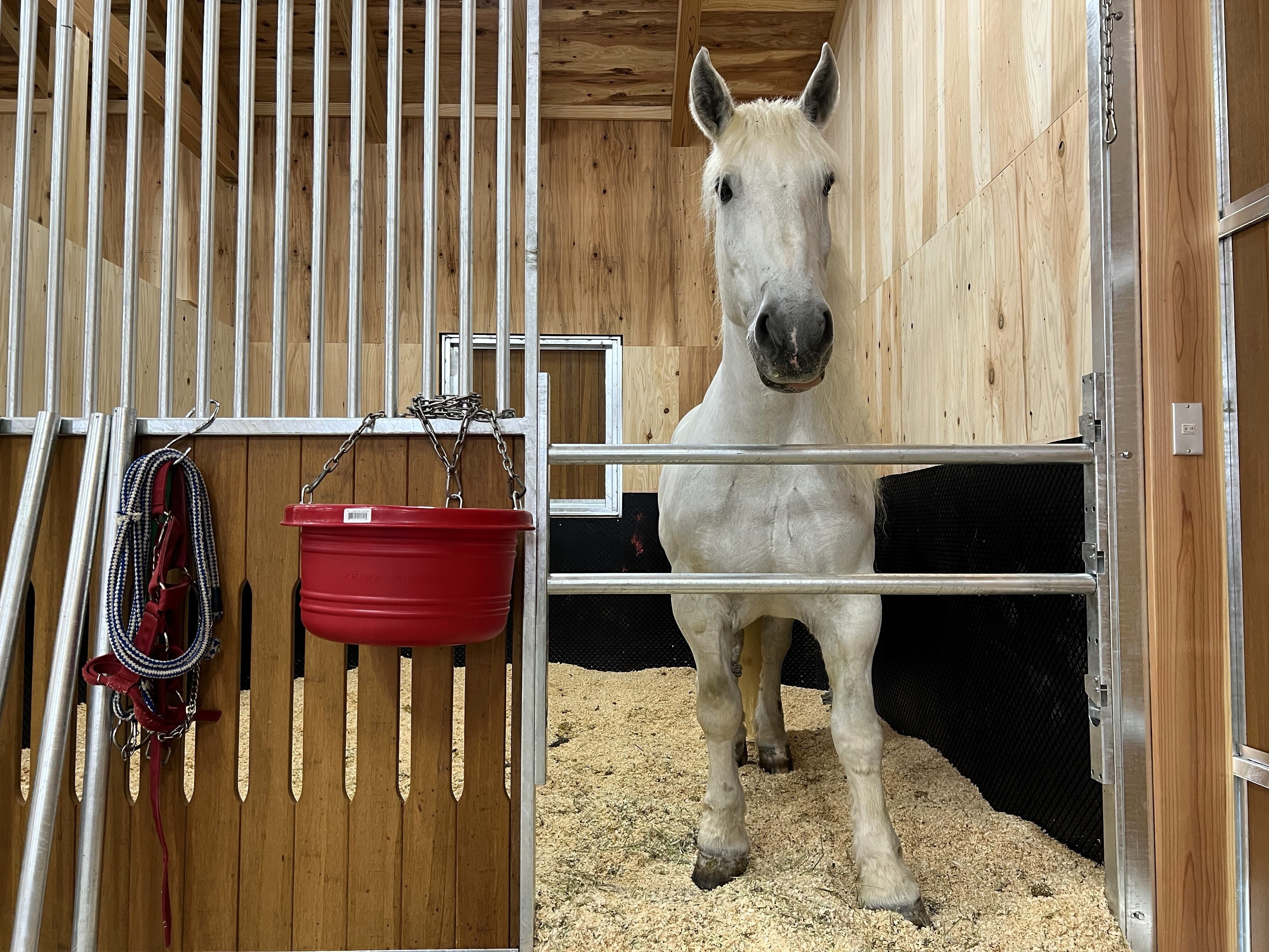 そしてついに本日、「TCC メタセコイアと馬の森」の新厩舎にりんご&マロンが入厩しました!