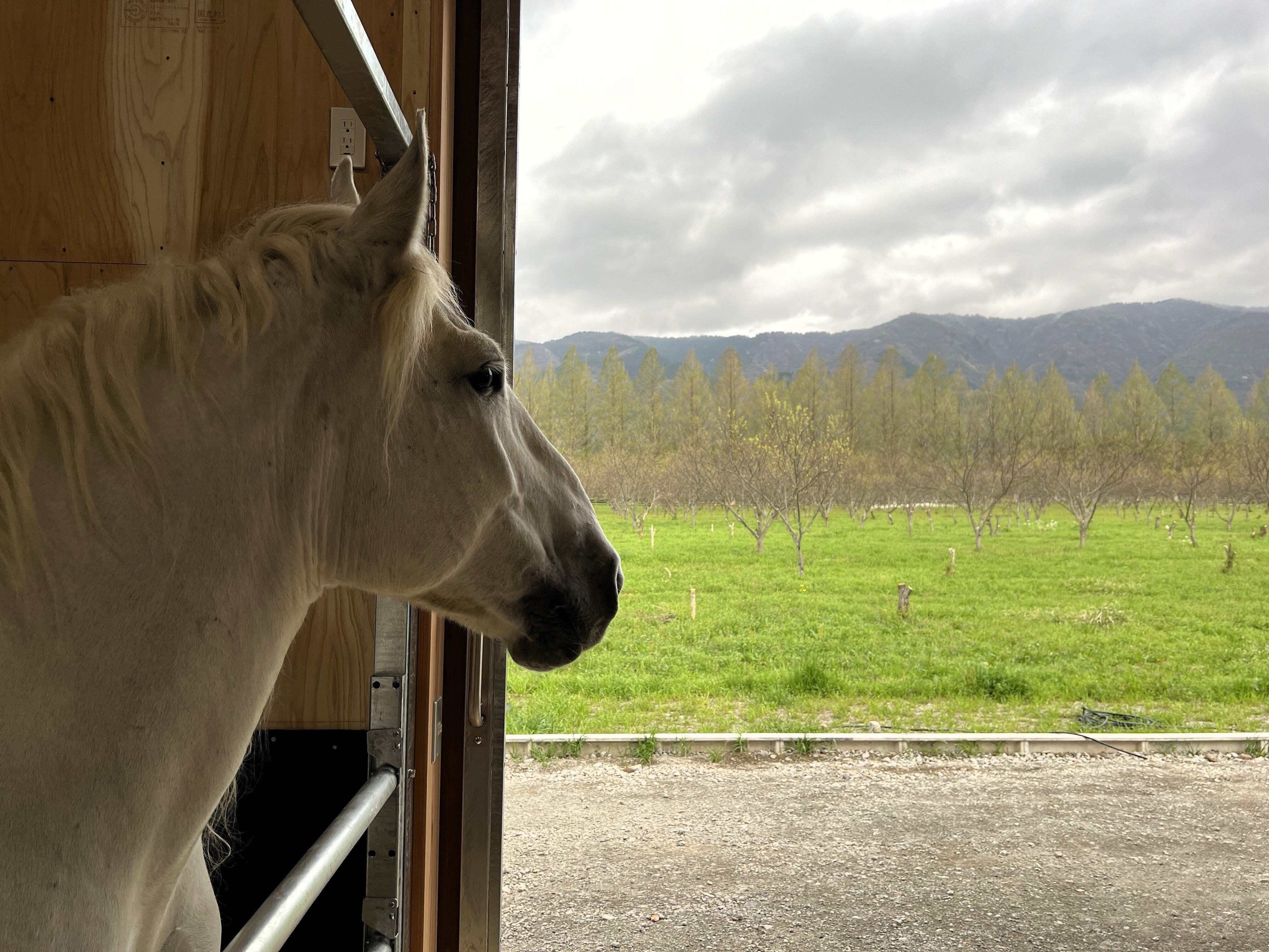 またちょうどお昼時になってしまいましたが、りんごちゃんの馬房での様子や現地の状況をインスタライブでお届けしました。