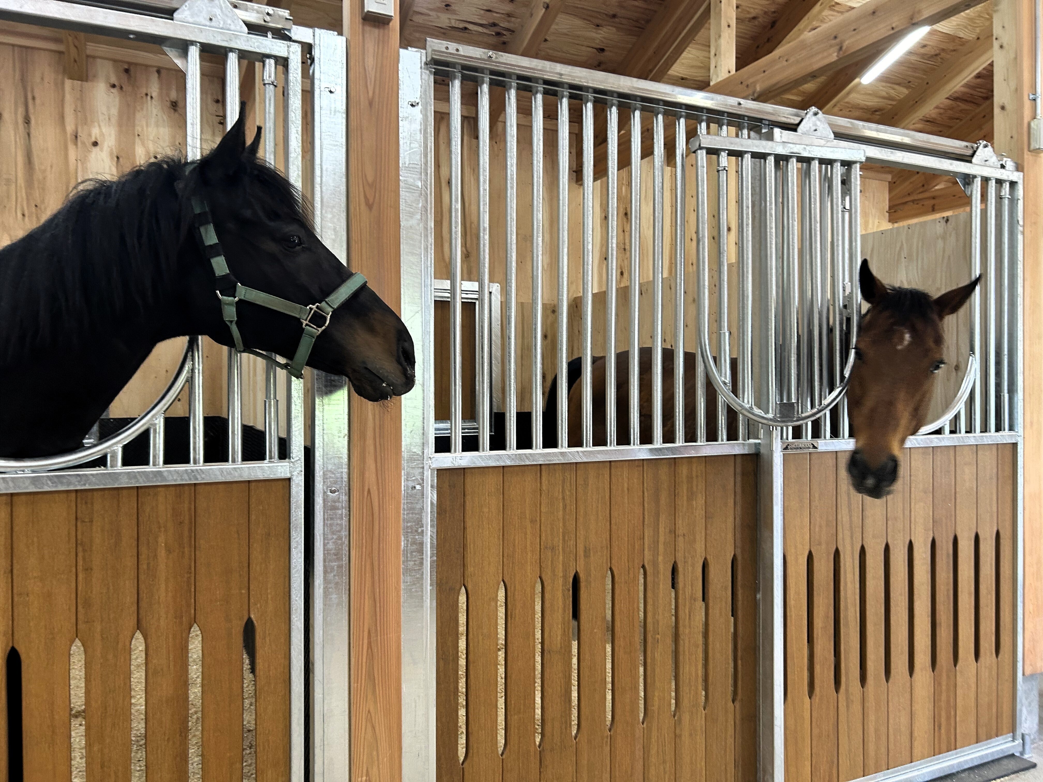 本日は昨日に引き続き、「TCC メタセコイアと馬の森」の新厩舎に TCCホース ネコビッチ&フルーキーが入厩しました!