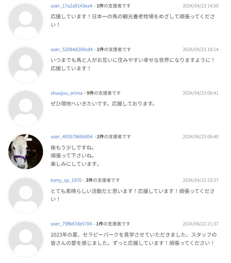 毎日、プロジェクトページ内の「支援者」ページに更新されていく、あたたかくて心強い応援コメントが一番の励みになっています。