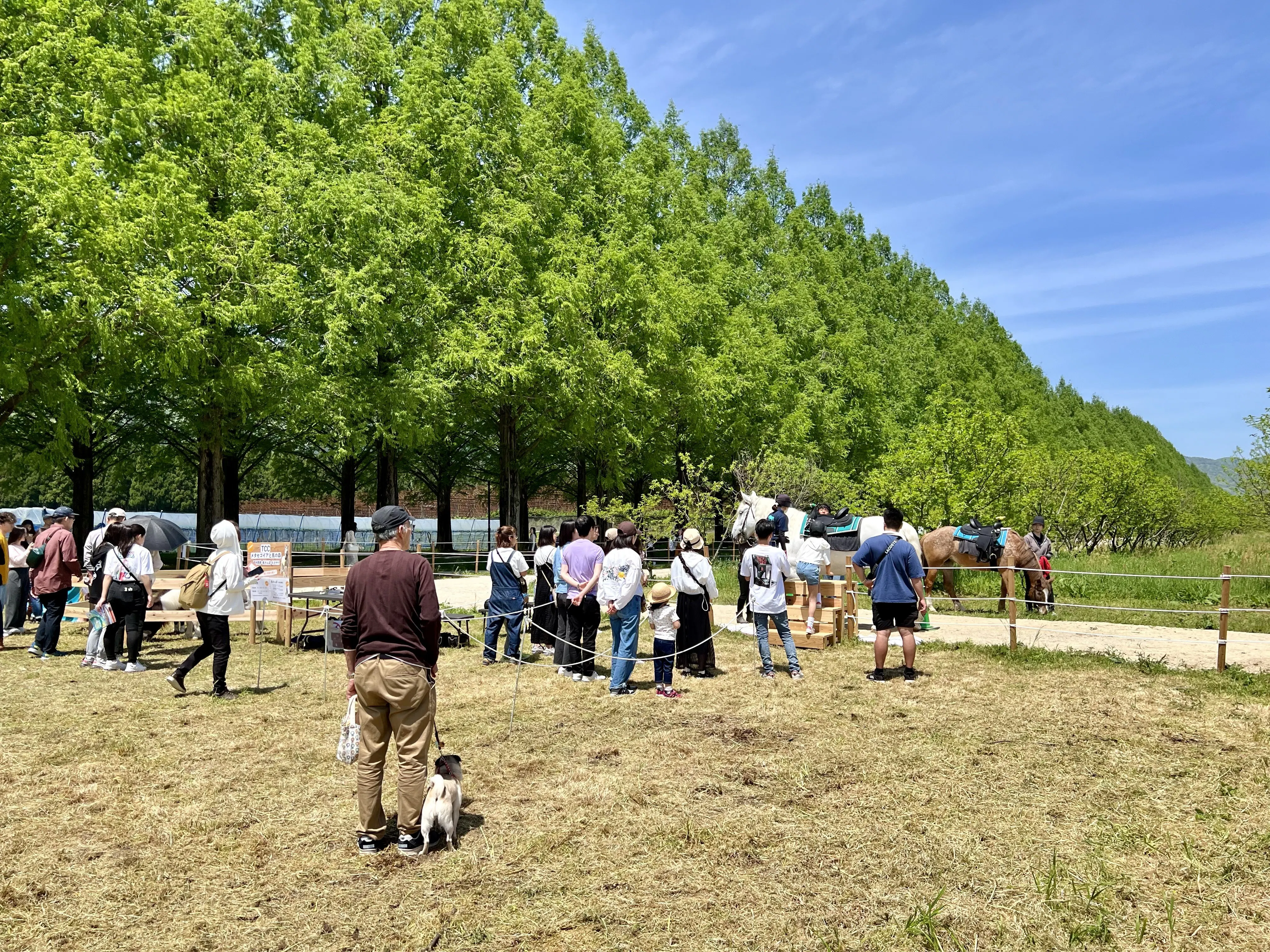 「TCC メタセコイアと馬の森」プレ営業は、ゴールデンウィークということもあって本日もたくさんのお客さまにお越しいただき、なんと満員御礼となりました!