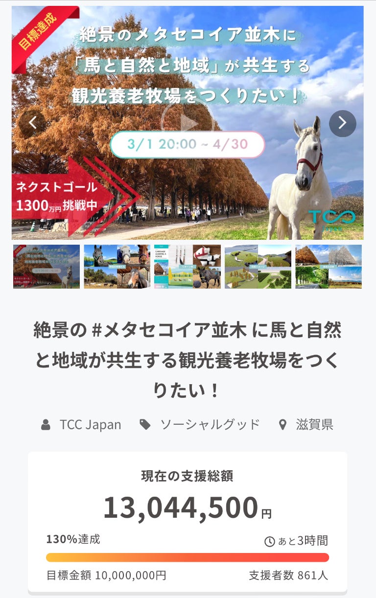 「TCC メタセコイアと馬の森」クラウドファンディング