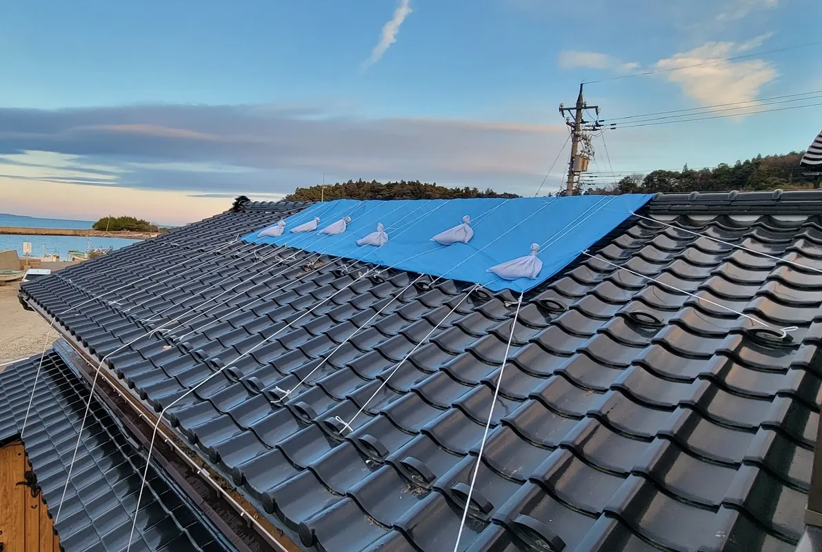 それでも、屋根は、瓦がこれ以上ズレ落ちないように、吹雪が来る前に夫婦で何とか、寒空の中で応急処置をしました。