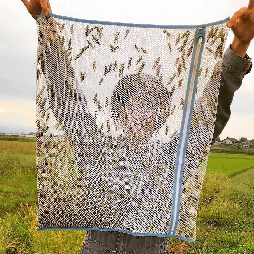 その醤油を仕込むためのイナゴを田んぼでとり、