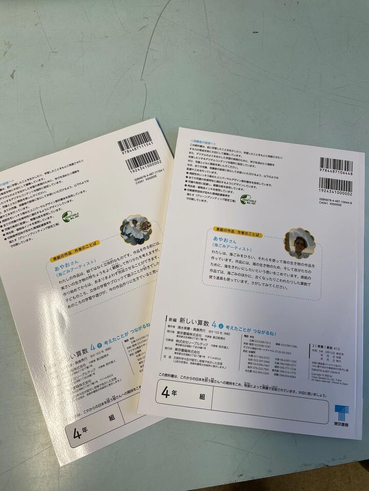 私の作品が4月から小4の算数の教科書の表紙になるんだよ。