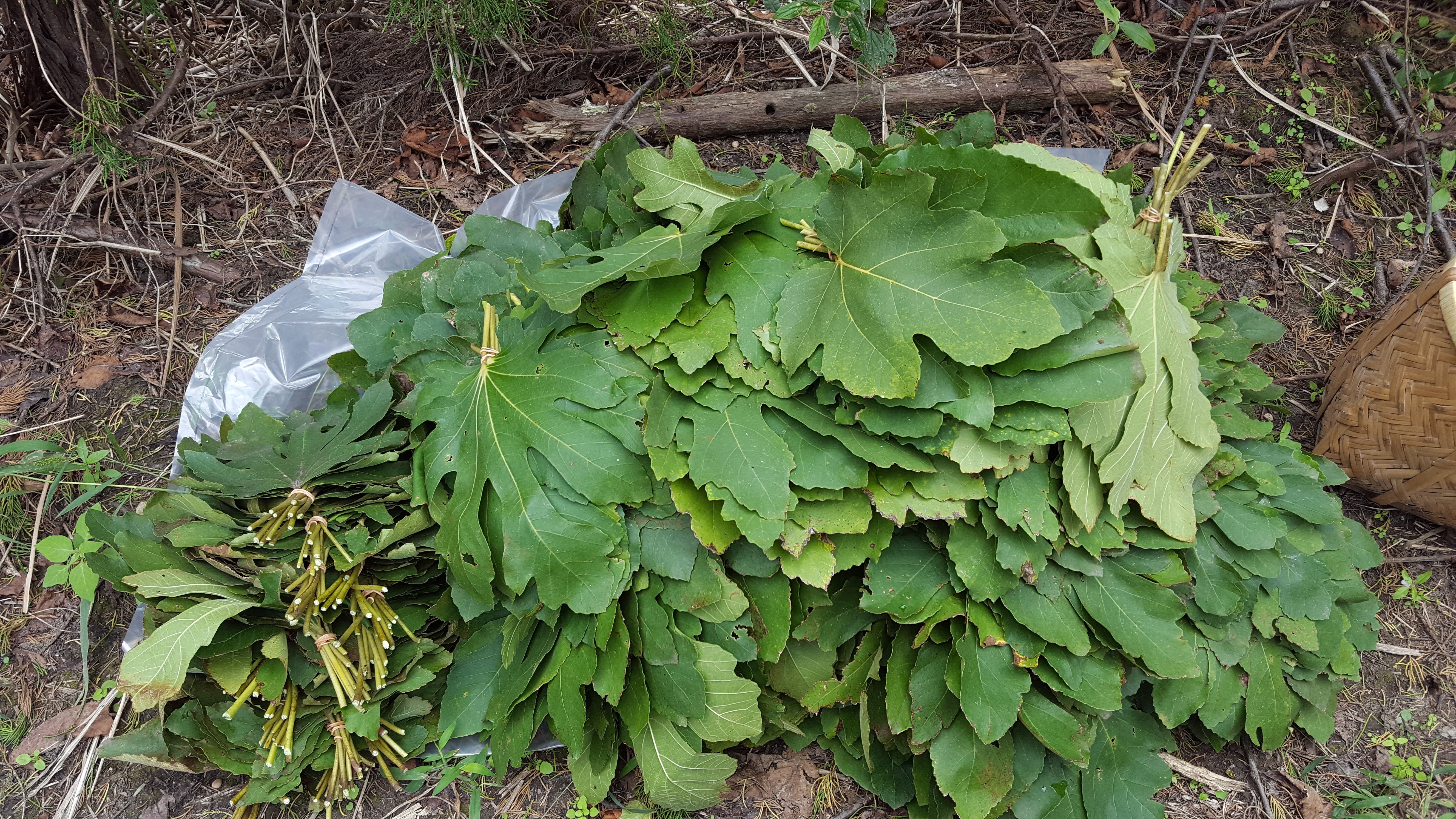 料理に使うイチジクの葉っぱを大量にとり、