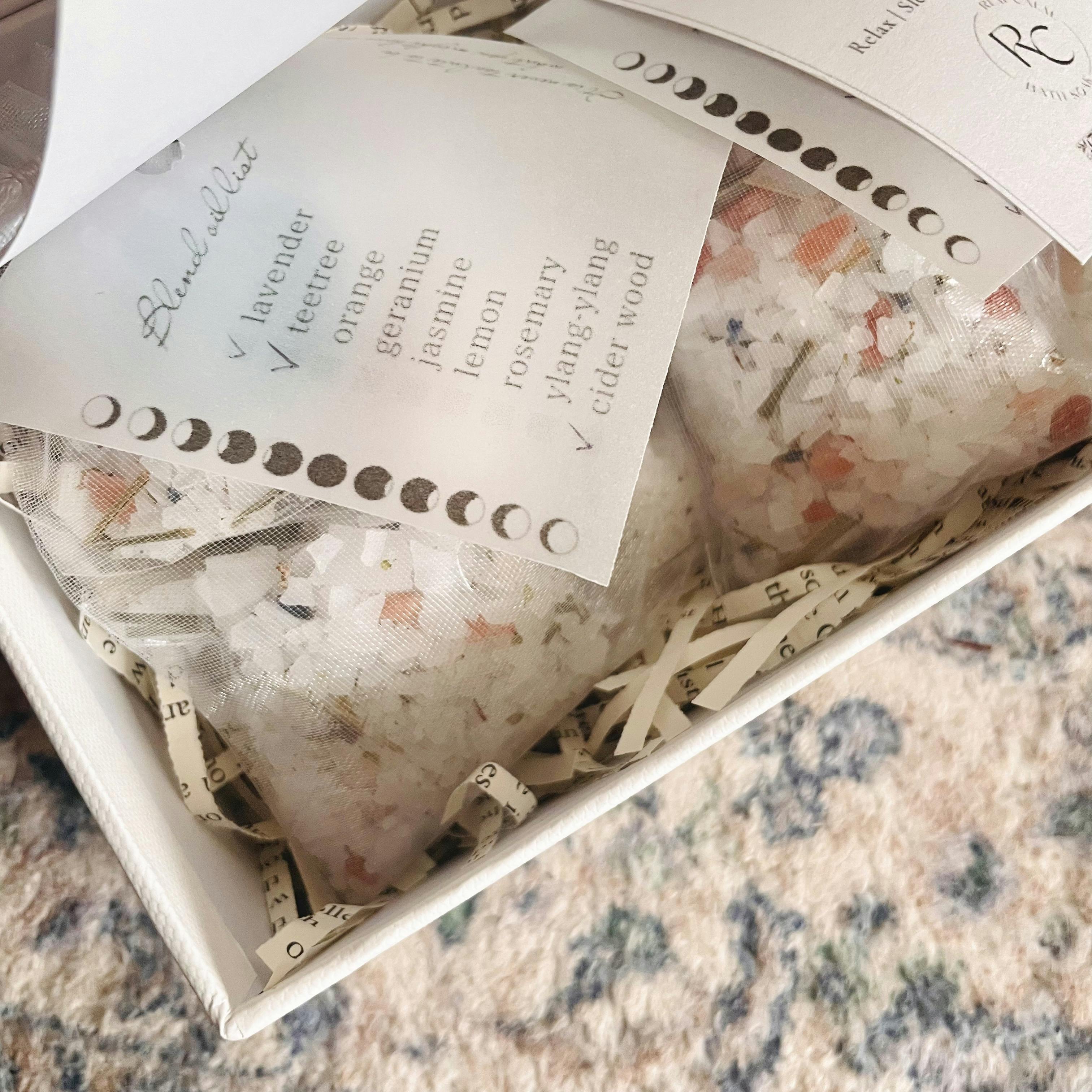 オリジナルでブレンドしたエッセンシャルオイルの優しく落ち着いた香りとドライラベンダーやピンクソルトの華やかで可愛らしさのおかげで、家族で楽しんで入浴できるようになりました。