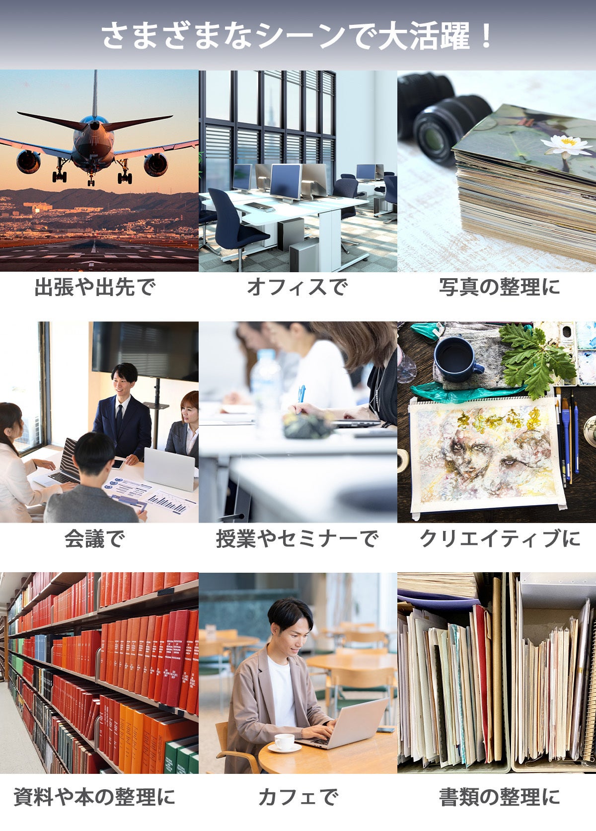 置き場所や使用場所の選択肢が広がり、多様なシーンでお使いいただけます!