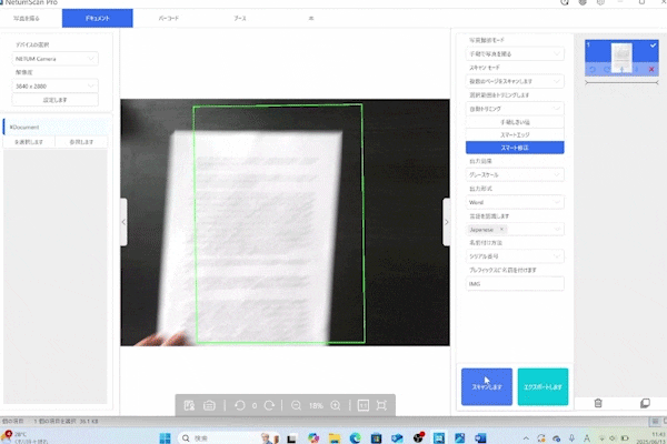 連続スキャン機能では、書類をスキャナーにセットし直す必要がなく、ページをめくるだけで次々とスキャンできます。たとえば、分厚い参考書や会議資料、イラスト集なども、一度の作業でスムーズにデジタル化が可能です。中断することなく作業を進められるため、大量の資料を扱う現場では特に効果的です。