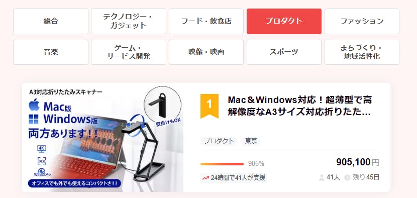皆さんこんにちは、Brightチームです。この度は「Mac&Windows対応!超薄型で高解像度なA3サイズ対応折りたたみスキャナー」を支援いただき、本当にありがとうございます。おかげさまで開始から3分で目標を達成することが出来ました。また本日のCampfireランキングプロダクト部門で 1 位!総合で 2 位に入賞することが出来ました!皆さまの支援を励みに、喜んでいただける製品作りに努めてまいります。9月末まで販売期間は続きますので、ぜひSNSでのシェアや身近な方にもおすすめしていただけると嬉しく思います。https://camp-fire.jp/projects/736687/viewどうぞよろしくお願いいたします。ありがとうございました。スタッフ一同