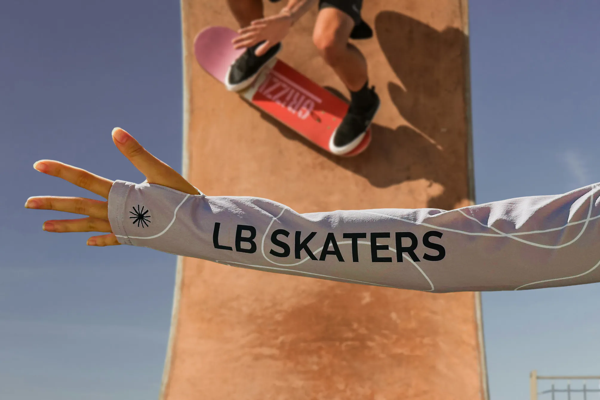 スケボーパークでTシャツの下に自分たちだけのファッションアイテムを。チームロゴを入れて、試合に挑む時の一体感を。