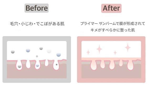 プライマーを塗ったことによりメイクの持続力を高めて密着性もあり、毛穴やデコボコを滑らかにしてメイクのノリがよくなります。さらに塗れば塗るほど汚れて崩れてしまうファンデーションの使用量を抑えます。