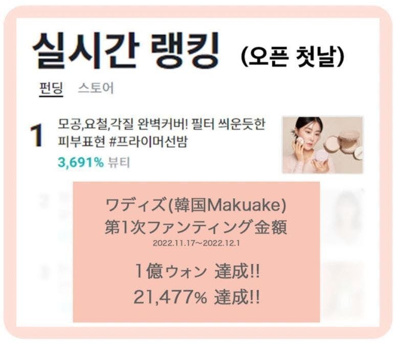 韓国の最大手クラウドファンディングWADIZ(ワディズ)でも絶賛好評いただきました。