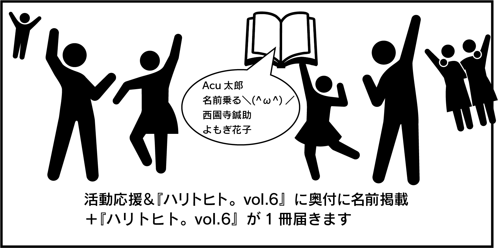 ハリトヒト。の活動を応援してくださる方はこちら。感謝を込めて『ハリトヒト。vol.6』にお名前を掲載させていただきます。(ペンネーム可)