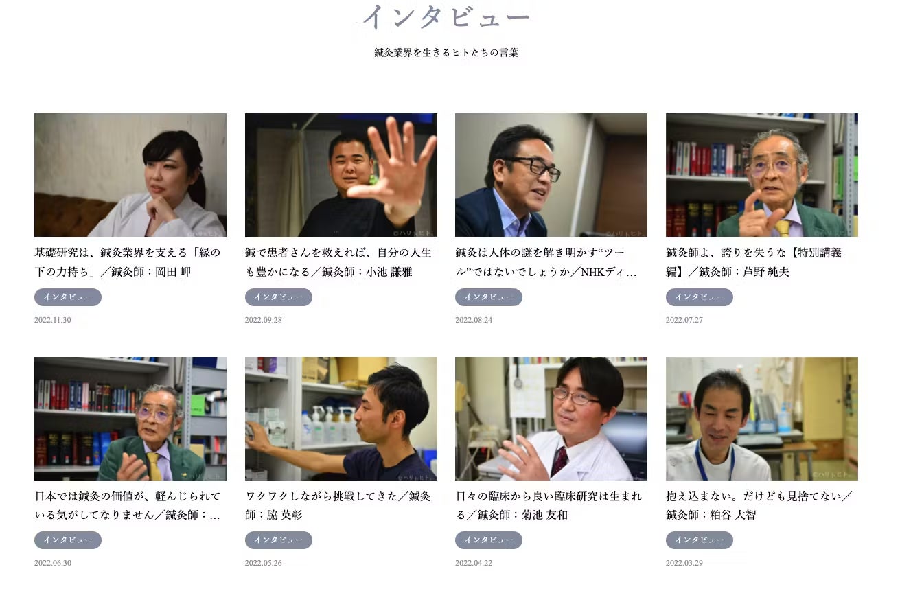 鍼灸業界のヒトたちにインタビューを実施し、言葉と想いを伝えています。