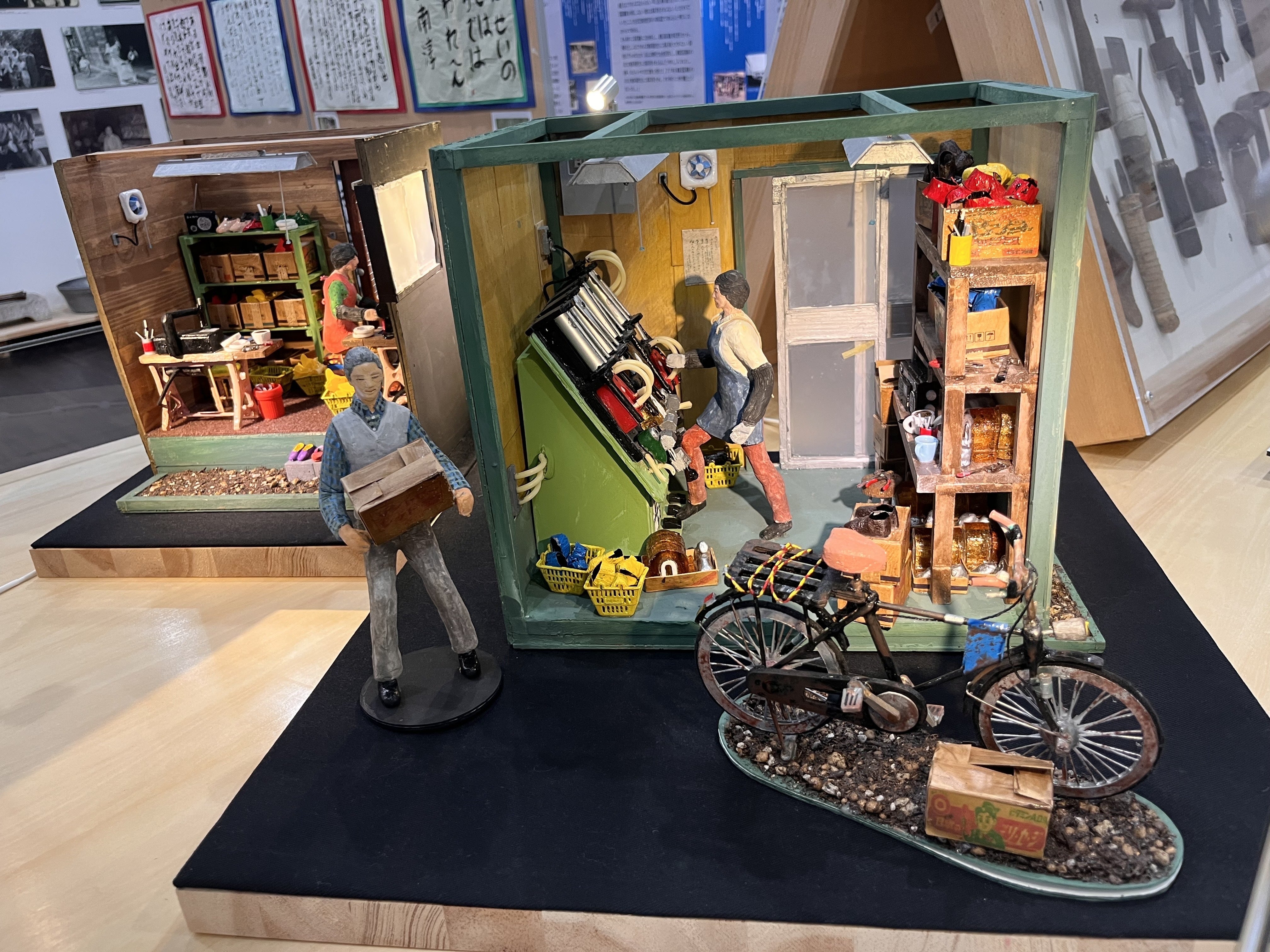 ③生活ジオラマや暮らしの道具、ケミカルシューズ産業の起こりと発展を伝える資料