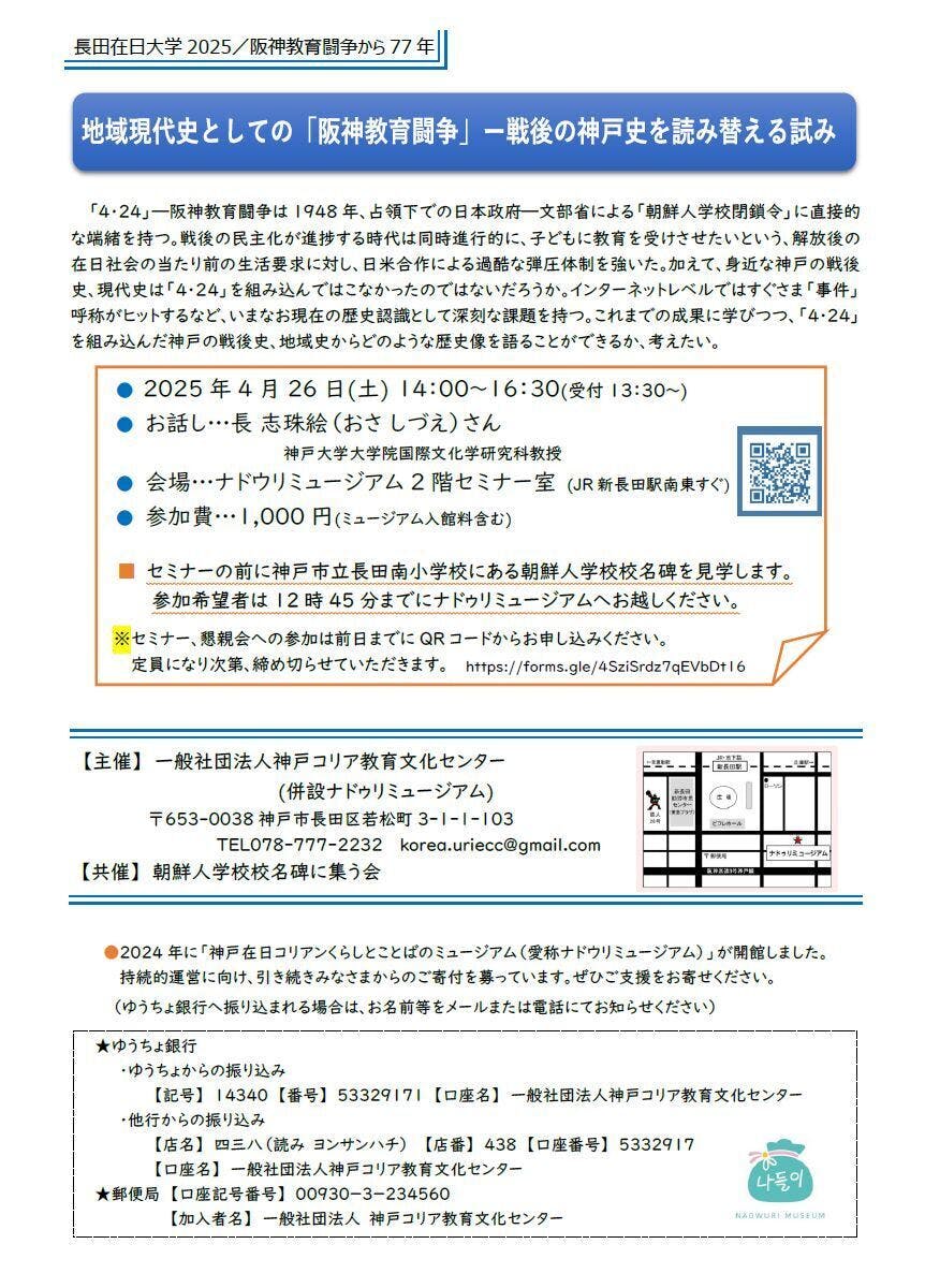 【主催】一般社団法人神戸コリア教育文化センター(併設ナドゥリミュージアム)