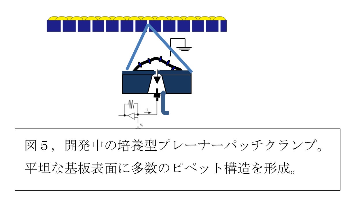 平坦な基板に多数のピペット構造を形成したものです(図5)。開発中の装置は遺伝子解析の機能は持っていませんが、フロンテイアバイオシステムズ社が単一細胞の遺伝子解析装置を開発しており、一緒に販売することになっております。