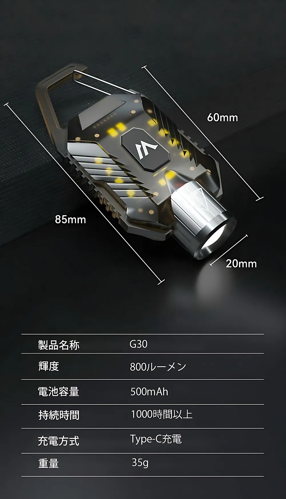 一般的なライトは約50ルーメンほどで、200ルーメンあると高輝度で明るいとされています。しかし、G30は約800ルーメンもあるため、前方をより明るく照らすことができます。