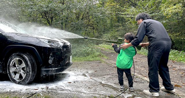 『洗車をゴルフやキャンプの様な