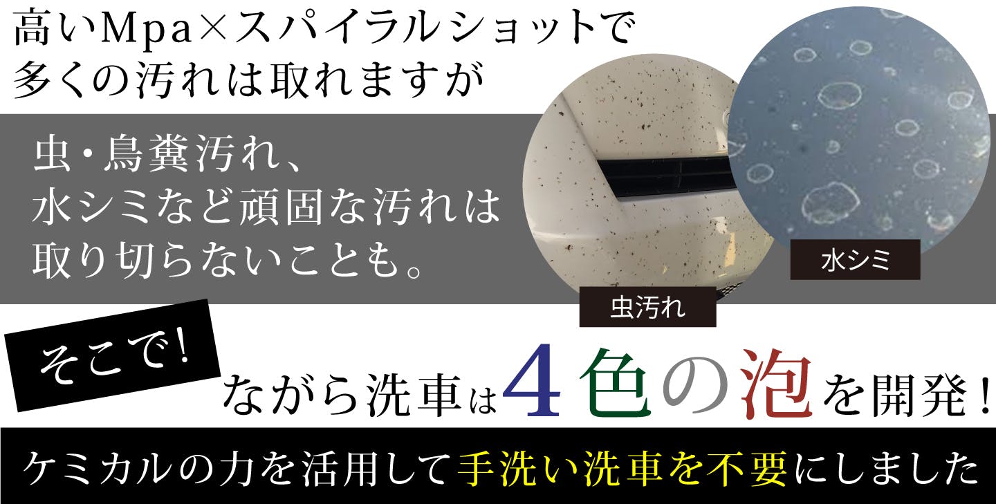 ※汚れ落ちの保証をするものではありません。酷い汚れには手洗い洗車を推奨いたします。