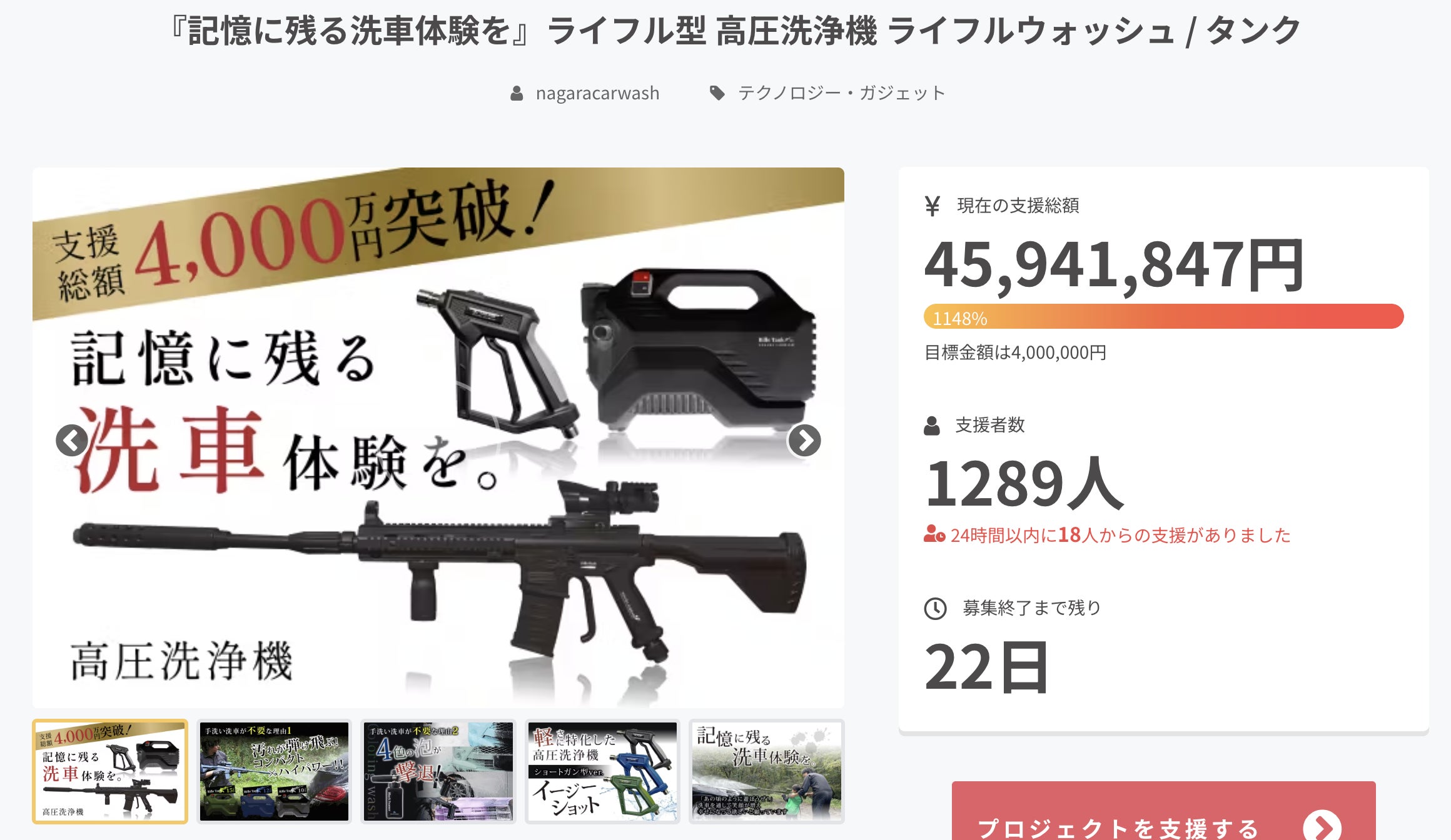 支援金額が4,000万円突破いたしました!