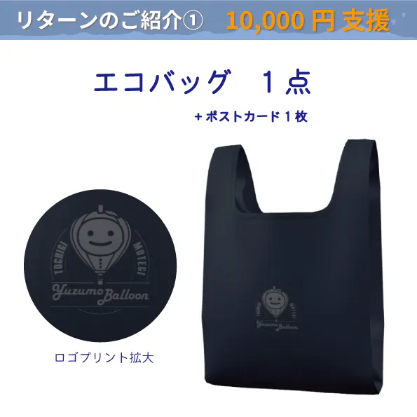 「ゆずもバルーン」のロゴをあしらった、ポリエステル製のエコバッグです。