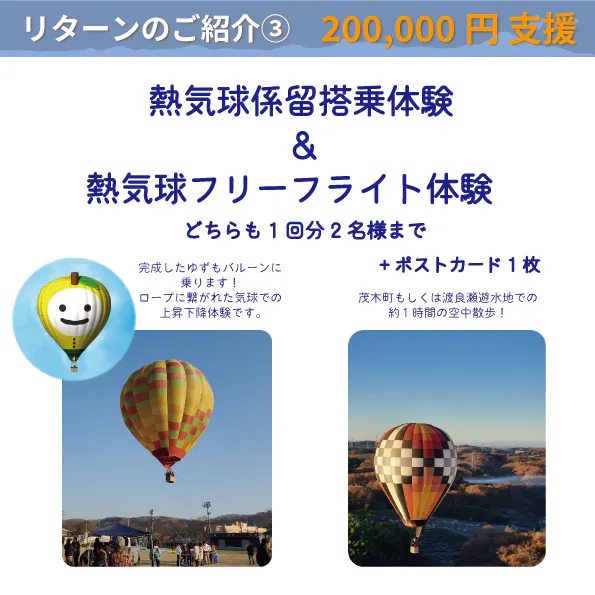 ※「ゆずもバルーン」に乗っていただきたいので設定していますが、遠方でお越しいただけない等で係留搭乗体験が難しい場合は備考欄にその旨ご記入ください。