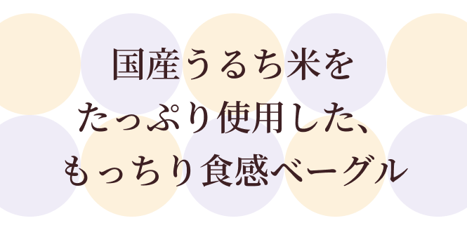 国産うるち米と小麦粉を配合することで生まれた、一度食べると病みつきになる”もっちり食感のベーグル”。某有名ベーグル店にて3年間の修行に加え、6年間のレシピ配合の試行錯誤を経て辿り着いた絶品モチっと食感ベーグルをぜひ、お手に取ってみてください。