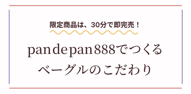 お店を知ってくださる方が徐々に増えてきたこともあってか、限定商品は30分で完売することも。「pan de pan 888のベーグルだから何個も食べられてしまう!」「もちっとした食感が忘れられなくて、新作を毎月楽しみにしています」といった心温まる声もいただいております。