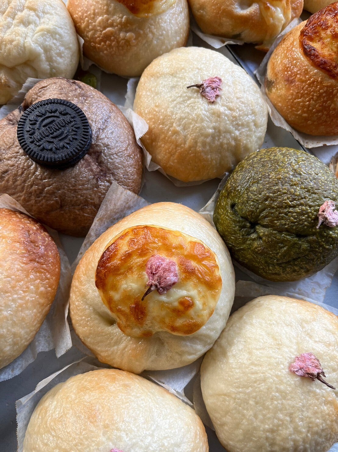 原材料名:小麦粉、米粉、桜餡、ずんだ餡、白餡、よもぎ、紅麹、桜葉、岩塩、砂糖、はちみつ、モルト液、塩、イースト