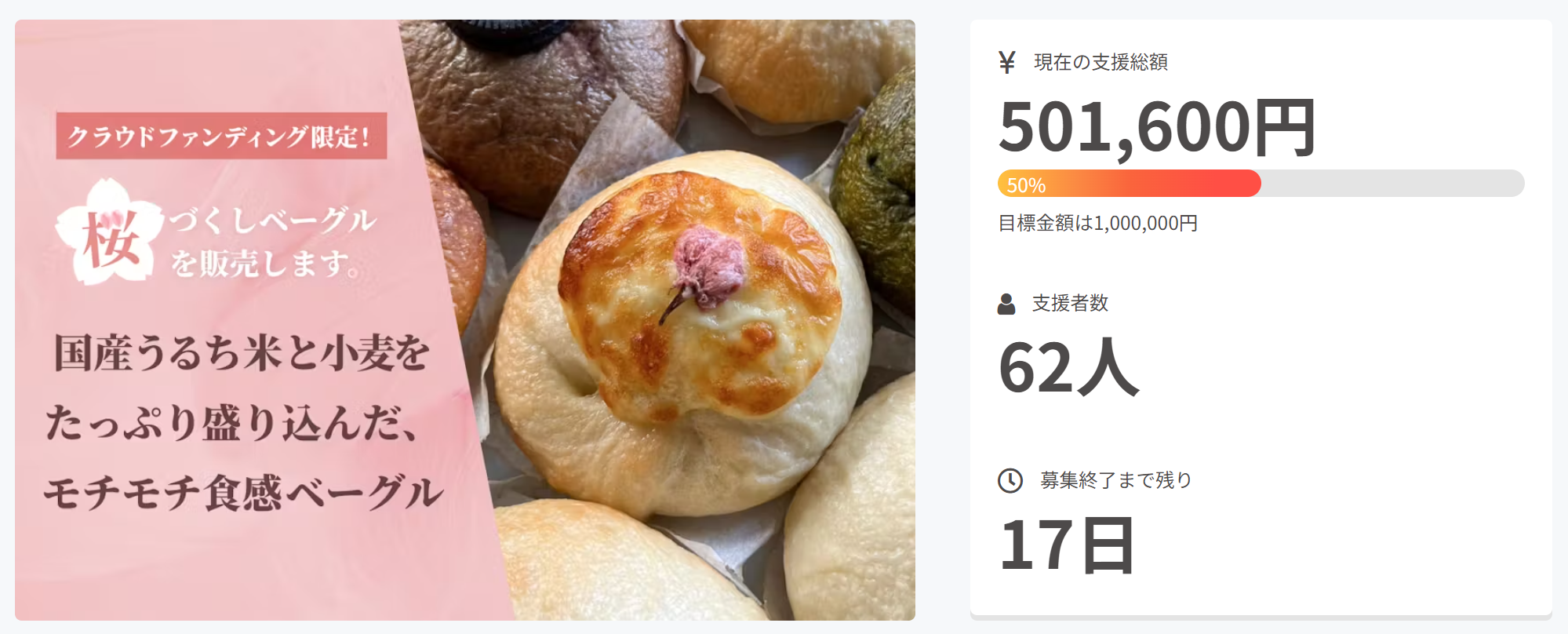 みなさまのおかげで、62名の方にベーグルを手に取っていただけることとなりました。