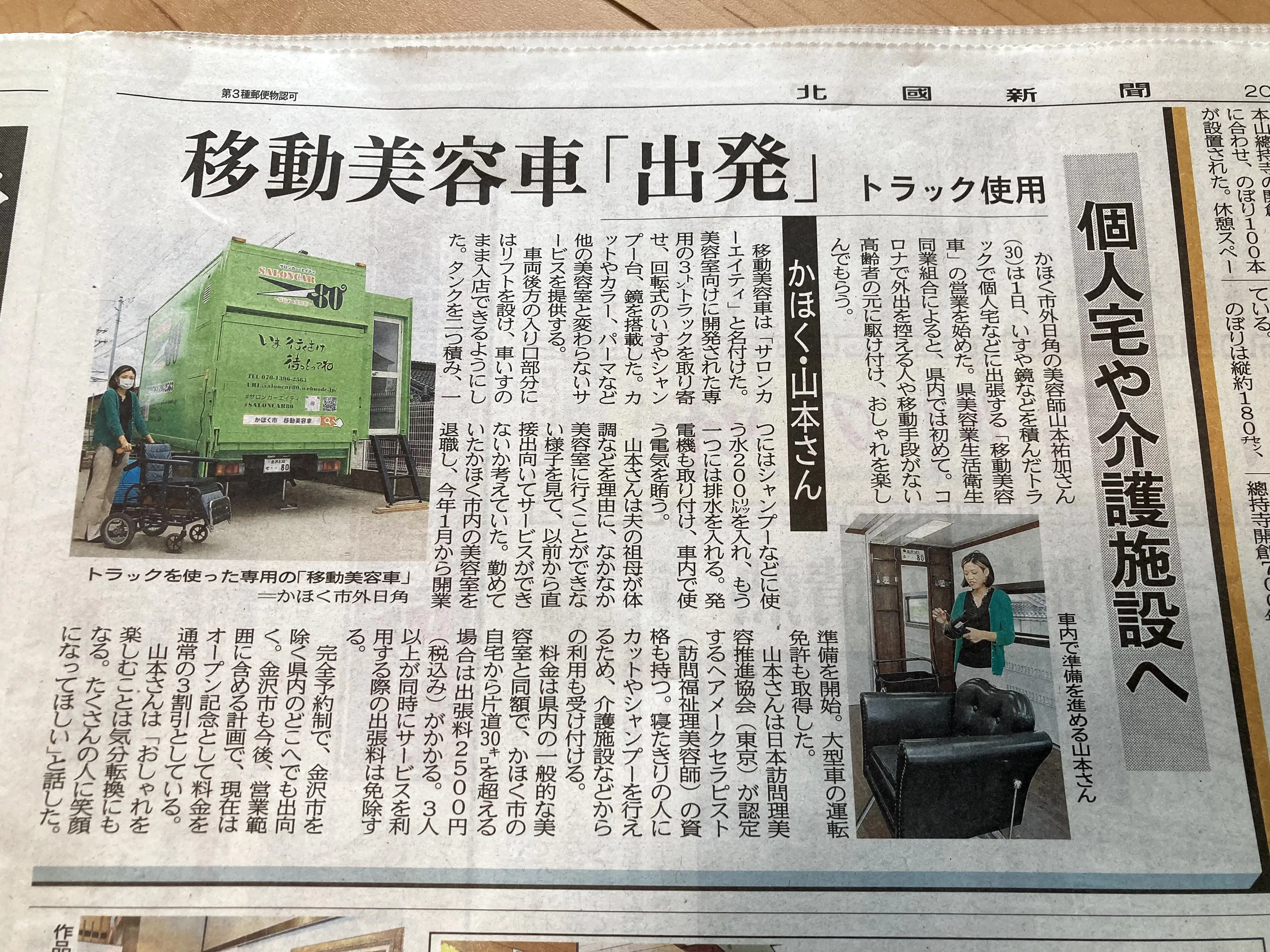 令和3年から石川県初の移動美容車として営業を開始し、高齢者施設、個人宅などへ出張をしております。震災前から出身地の能登方面にも定期で伺っておりました。