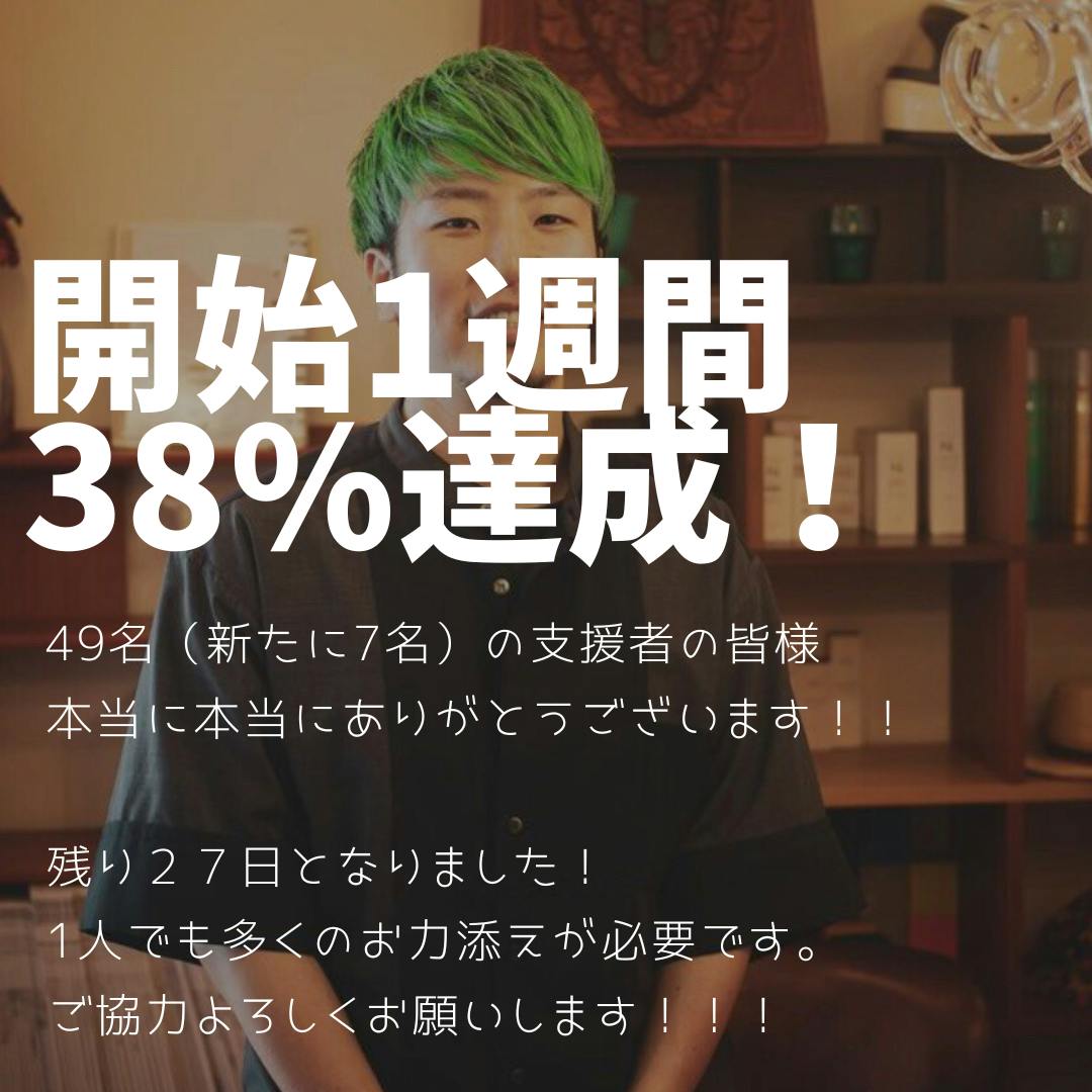 2024/04/03 16:53クラファンスタートから1週間が経過し、目標の38%まで到達することができました。ご支援いただいた皆様、改めて本当にありがとうございます!!!残り27日となり目標達成出来るのか不安な期間になってきましたが、出来ることはやり切って後悔しないよう進んでいきます!!応援、お力添えよろしくお願いします!! もっと見る