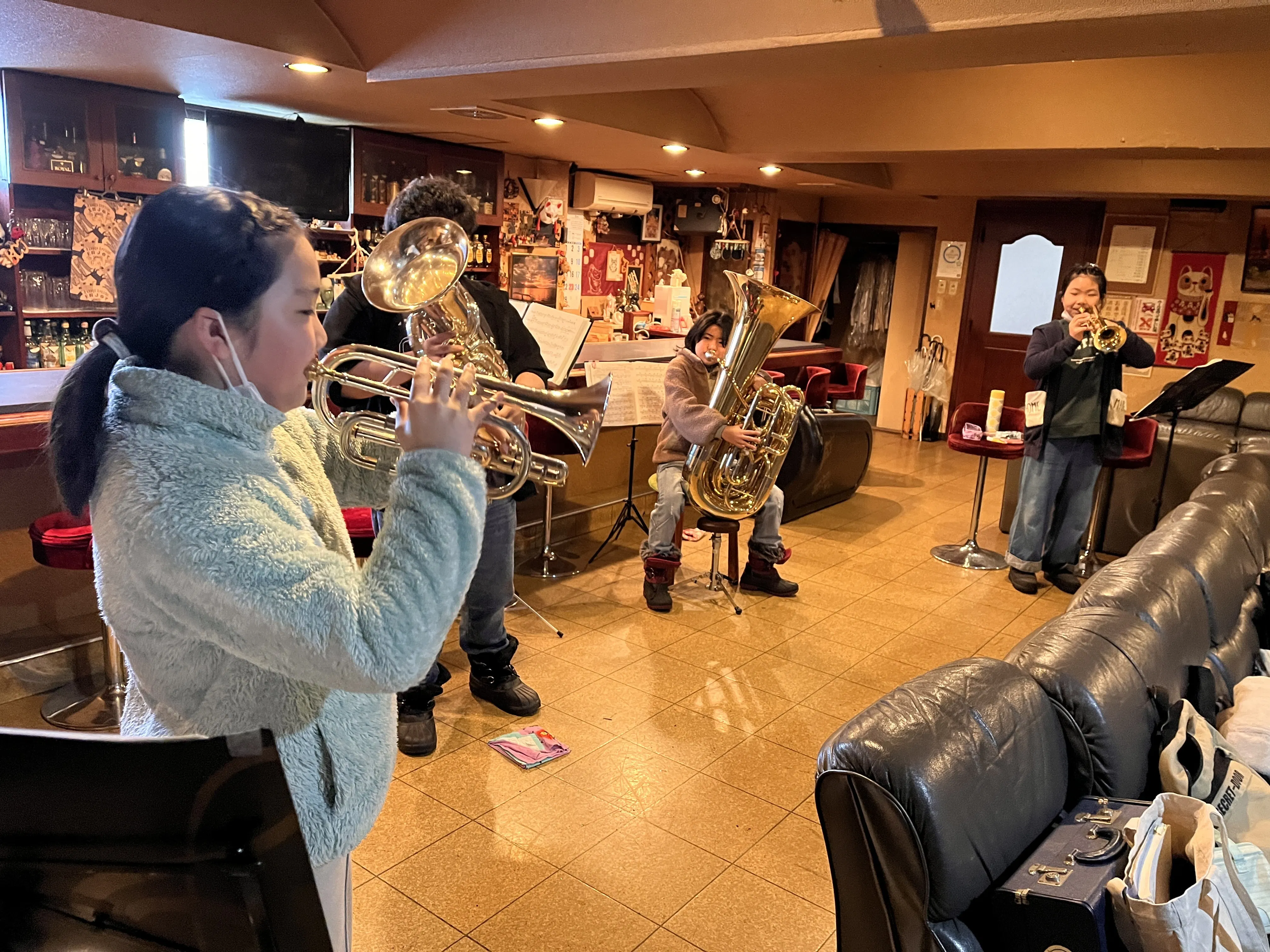 今日の練習場所は、地域の方のご好意でお借りしている地下の空間。子どもたちにとってはまるで秘密基地。
