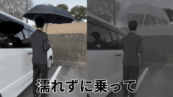 傘を閉じた瞬間にドアをしめれば、濡れるスキをつくりません。