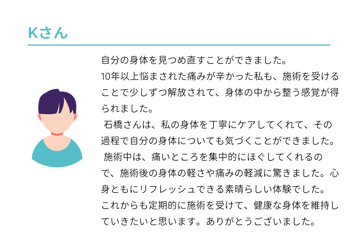 そんな僕の施術で変化があった!という患者さんの声を一部紹介しますね。