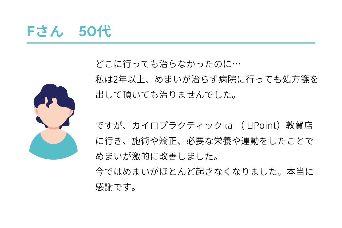 ・現在、カイロプラクティックサロンkai(旧店舗名Point)敦賀店、丸岡店の2店舗を経営。