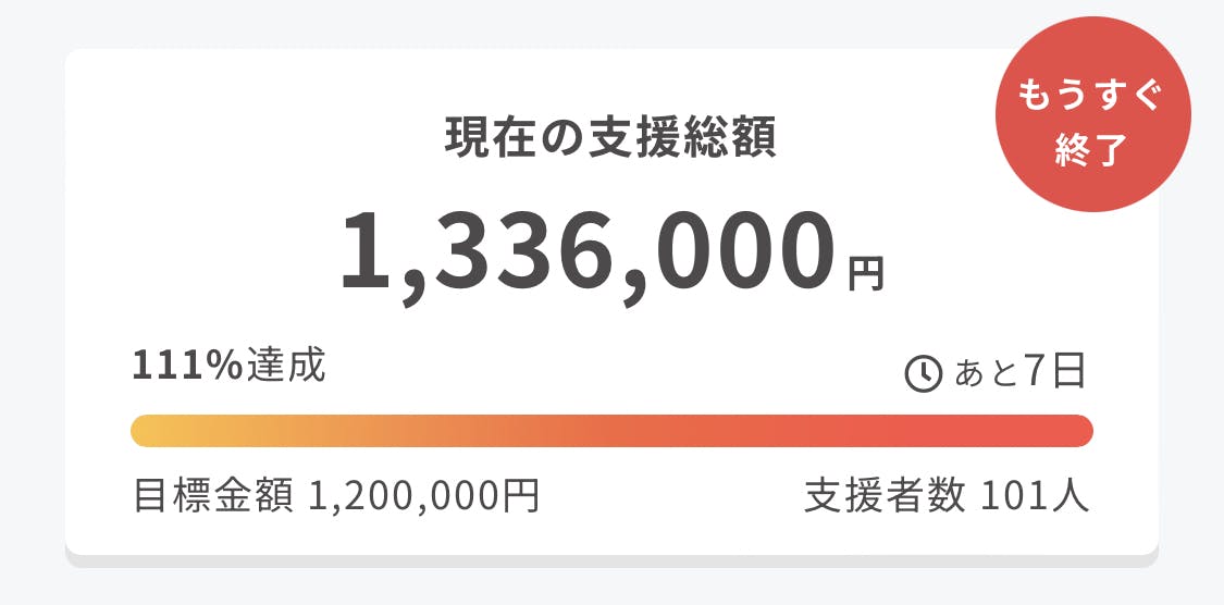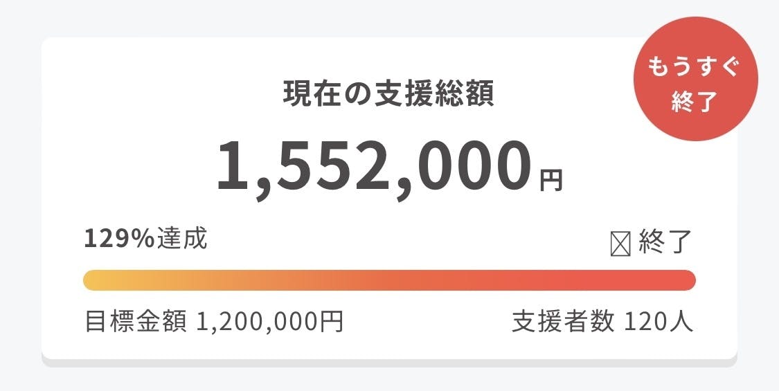 残りわずかのクラファンも、