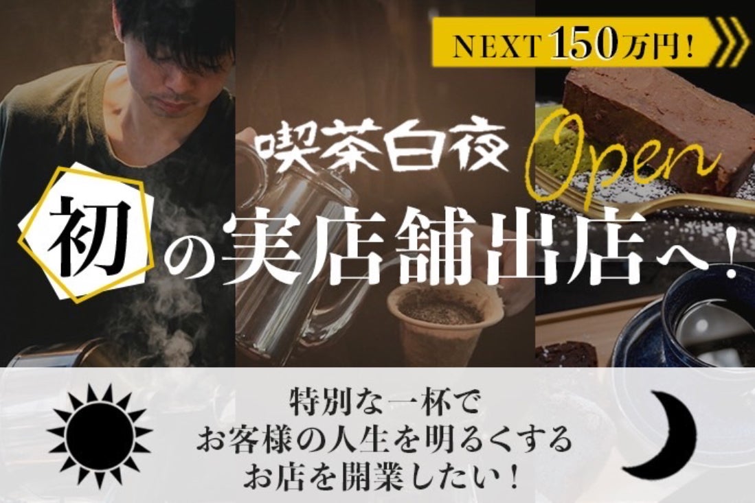 2024/03/24 13:05日頃から、応援していただいてる皆様へ喫茶白夜のちくぜんです。いつも、応援や活動の拡散など本当にありがとうございます。お陰様で、当初の目標であった120万円を達成出来ました。改めて、感謝申しあげます。現在、NEXT ゴールの150万円を目指して頑張っております。その、目指す考えとしては、このプラスになる30万円で喫茶白夜をより良いお店作りにしたいと考えております。その、具体的なお店作りとして、コーヒーカップ/紅茶カップ+食器の追加購入(10万円)新メニューの開発費・道具の購入(5万円)店舗改装やイベント/ケータリング等の運営費(15万円)上記の費用に充てる事で、喫茶白夜を思い描いていた以上の店舗にする事で、より多くの方に幸せを提供することが出来ると考えています。このような目標に終わりは無いと考えております。なので、私もこの終わりが無い目標に対して諦めず、全力で挑み続けてより、多くの方にこの活動を知ってもらい、応援や支援をしていただきその支援で、喫茶白夜という存在が大きくなり、それにより、さらに大きい幸せが循環するようなお店にしていきます。純粋に『特別な一杯で期待以上の幸せを提供する』事を思い続けて、これからも頑張ります。改めて、この活動をまだ知らない方に届けていただいたり、ストーリー等で拡散していただけると嬉しいです。引き続き、クラファン終了3月31日までよろしくお願いします。◯クラファンのリターンについてこのクラファンが終了次第、随時、ご案内していきます。お待たせして申し訳ございません。引き続き、よろしくお願いいたします。 もっと見る